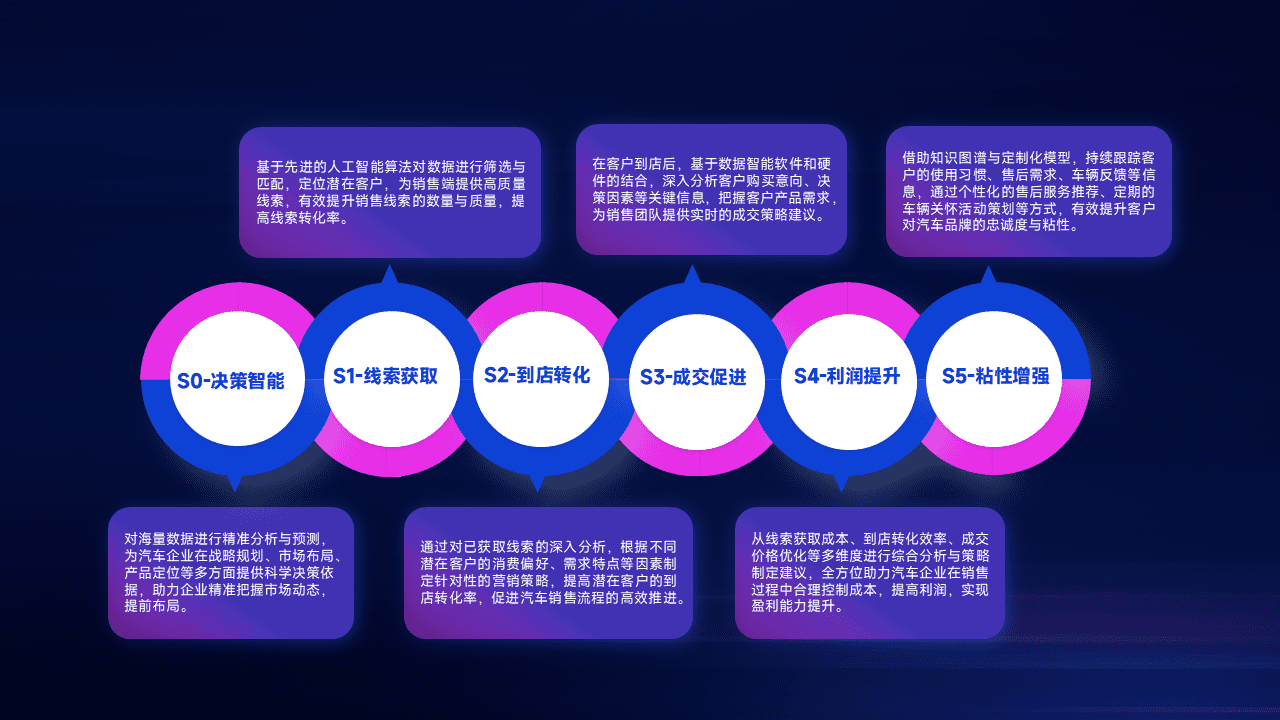 通过拓宽潜在客户来源、、优化线索分配并提高到店转化率,,,以增强销售效率。。。。同时,,,,利用线索数据不断优化分析模型,,,,有效提升转化率,,,扩大营销影响力。。。。